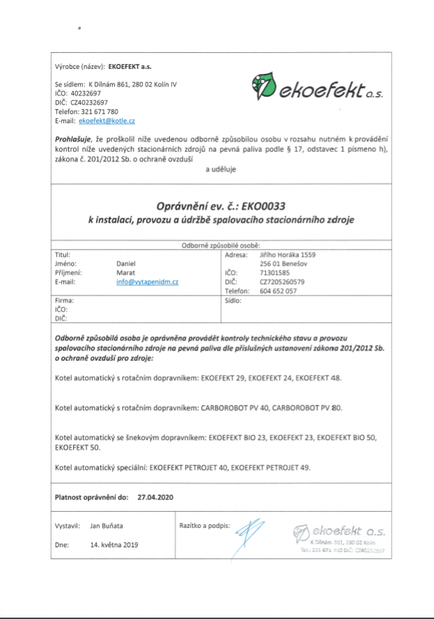 Tato situace se Vám s námi nestane díky našim dlouholetým zkušenostem v oboru vytápění. Od řady výrobců kotlů a topenářské techniky máme oprávnění k montáži, servisu a revizi kotlů.